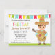 Comemore um aniversário de criança com uma festa mexicana colorida! Este convite é perfeito com sua escolha brilhante das cores como vermelho, azul, verde e amarelo. Caracterizam um menino vestido no divertimento e roupa temático mexicana colorida, um chapéu largo-brimmed Sombrero e um poncho que estão em teste padrão stripy interessante. O menino tem uma guitarra prendida com correias em torno de seu pescoço. A bandeira da estamenha pendura no fundo. A página reversa é uma guitarra. Os convidados estão indo olhar para a frente à música, comida e bebidas e um dia do divertimento!