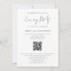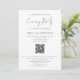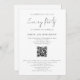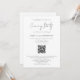 Festa de Casamento de Código QR do Script Moderno da Noite. Disponível digitalmente e impresso. Adicione seu código QR ao seu site de casamento para que seus convidados possam RSVP e ver todos os detalhes on-line sem a necessidade de gabinetes separados. Uma tipografia informal em preto para o Partido da Noite complementando o resto do texto que você pode facilmente personalizar.