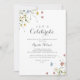 Este convite de festas de celebração de vamos de flores silvestres e coloridas é perfeito para uma festa de noivado rústica, festa de solteira, aposentadoria, graduação, casamento após festa ou qualquer evento ou festa. O design apresenta uma aquarela pintada manualmente, lindas flores rosa, pincéis, azuis, marinhos, amarelas, roxas e verdes selvagens.