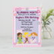 Este convite de festas customizável do descanso caracteriza as meninas com travesseiros que vestem pijamas.