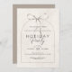 Nosso elegante convite de festas de boho com arco esticado, arco de coquete, moderno e texto escrito, se sentam juntos perfeitamente em um pano de fundo texturizado para criar um belo e minimalista convite de festas personalizadas. Perfeito para casais e famílias que valorizam o estilo de vida e eterno intencional, este cartão é fácil de personalizar com seu nome e todos os detalhes de sua festa. O claro fundo guinchado e esticado adiciona textura e suavidade, enquanto um charmoso arco de coquetete pálido no topo oferece uma nod lúcida para dar presente festivo. Projetado cuidadosamente em uma paleta neutra com um tom mais escuro e contrastante ao reverso, é uma maneira simples, mas bela, de convidar seus amigos e família para compartilhar alegria natalícia sazonal com você em sua festa de Natal.