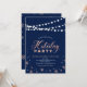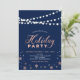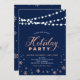 Comemore a temporada com este convite de festas de Férias. Este design apresenta falso falso falso flocos de neve de folha rosa de ouro e luzes de cordas com um tema de cor azul e rosa de ouro. Esta modelo de design será perfeita para uma festa na véspera de Ano Novo, festa de Natal, festa de Natal ou festa corporativa.