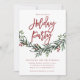 Convite para festa Feriado do Partido Feriado Verde do Script Vermelho moderno, com script em negrito e verde-aquarela com folhas e bagas. Faz um excelente de convite pessoal ou comercial.