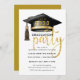Placa de Convite para Graduação de Tassel de Boné Minimalista de Script Dourado Glitter Moderno. Felicita o FORMANDO! Parabéns sobre seu bem merecido sucesso e celebrá-los com esta bela carta. Todos os textos estão pré-organizados para que você personalize fácil e rapidamente com seus próprios detalhes.