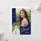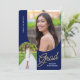 Convide amigos e familiares para o seu "Partido Formando" com o convite moderno, de 2 fotos, azul marinho e ouro. O design apresenta fotos com uma borda arquivada. O texto personalizado, no verso, permite que você personalize com os detalhes do seu partido.