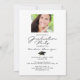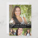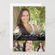 Convite de festa de formatura moderno com 5 fotos (4 na frente e 1 na parte traseira) com um design de título de FORMANDO de tipografia manuscrito de tendência, acentuado com um boné de formatura ou quadro-negro em branco contra um fundo preto editável, você pode mudar para uma cor da escola, uma cor para coordenar com suas fotos ou uma cor favorita. A parte traseira inclui os detalhes do seu convite de festas personalizado. ASSISTÊNCIA: para obter ajuda com a modificação ou personalização do design, alteração de cor, transferência do design para outro produto ou você gostaria de coordenar itens, entre em contato com o designer ANTES DE ENCOMENDAR através da guia MENSAGEM de bate-papo Zazzle ou envie um email para makeitaboutyoustore@gmail.com.