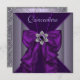 Elegante arco roxo de Quinceanera convite. Adicione os seus detalhes à frente e atrás adicionando os detalhes do evento, estilo da fonte, tamanho da fonte e cor e texto. Observe que todos os designs de convite que você encontrará no Zazzle são gráficos impressos em estoque de papel plano sem joias reais, arcos, levantados, gravados em relevo ou peças ou peças adicionadas.