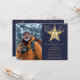 Este elegante convite de festas de aposentadoria azul com estrelas douradas pode ser personalizado com todas as suas informações especiais de celebração e fotos. Projetado por Thisnotme©