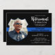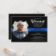Comemore anos de serviço dedicado e convide amigos e família com este Convite de aposentadoria da Polícia de Thin Blue Line Personalizado para Fotografias. Personalize com nome, título, anos de serviço, local de endereço. Este convite de festas de aposentadoria policial é perfeito para todos os policiais aposentados, polícias de aposentadoria. Veja a coleção de presentes, favoritos para festas e suprimentos da polícia. COPYRIGHT © 2020 Judy Burrows, Black Dog Art - Todos Os Direitos Reservados. Convite de festas de Retirada de Fotografias Personalizadas de Lin Azul Fino da Polícia