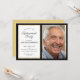Este convite de festas de retirada de fotos oferece um layout elegante e profissional, com uma borda preta que é acentuada por uma borda dourada mais fina. Foto personalizada e texto que permite adicionar uma imagem do honroso e dos detalhes do seu grupo de aposentadoria.