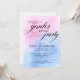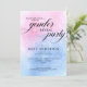 Este convite de festas virtual revela um script elegante em um plano de fundo cor-de-água rosa e azul.