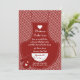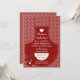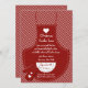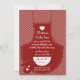 Um convite adorável com um avental vermelho e um forno. Ambas são aparadas com corações e apresentam-se sobre um fundo vermelho e branco com tiras de pinos. Bem adequado para festas de troca de cookies, chás de panela, festas de Dia de os namorados, festas de churrasco e muito mais.