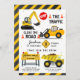 Convite de festas de aniversário de criança do caminhão de despejo de construção.