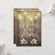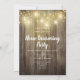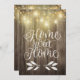 Linda madeira rusticada, com luzes de cordas e frascos-pedras. Esta design cria um brilho quente e acolhedor perfeito para anunciar sua nova casa, ou criar convites para festas de aquecimento da casa, festas de jardim e bbqs. O texto Home Sweet Home na frente do convite é parte do design e não é editável. Todo o texto na parte traseira do convite pode ser editado para se adequar à sua ocasião. Esta design também está disponível para outras comemorações.