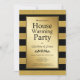 Um moderno convite de festas de limpeza doméstica, preto e dourado.