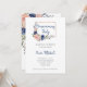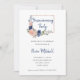 Esses convites de festas de limpeza e na moda apresentam flores desenhadas à mão em azul marinho e aquarelas cor-de-rosa pincelada. Muitas folhas verdes botânicas e folhagem decoram os buquês. Há também um falso rosa dourado que parece um quadro geométrico retangular e um script manual moderno.