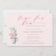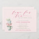 Um convite de festas bonito e moderno de chá chá de fraldas, com uma ilustração aquática de equipes empilhadas e título "tempo para o chá" em letra de caligrafia moderna rosa-baga.