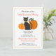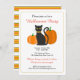 Convide amigos e família a seu partido do Dia das Bruxas no estilo com estes convites de festas elegantes contudo lunáticos do Dia das Bruxas. Características que deste design um gato preto cercou por duas abóboras. A parte traseira do cartão caracteriza listras de harmonização no marrom branco, alaranjado, amarelo, e escuro. Substitua o texto com seus próprios.
