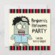 Um convite do divertimento para seu partido do Dia das Bruxas que é inteiramente customizável para suas próprias celebrações do Dia das Bruxas. O convite caracteriza uma ilustração dos desenhos animados de um zombi assustador com uma beira de coordenação de listras verdes, vermelhas e pretas na parte superior e na parte inferior dos convites. Se você precisa o auxílio com sua personalização ou gostaria deste convite em uma combinação de cor diferente, para contactar-nos por favor através da loja de GiftsBonanza. sgb01