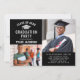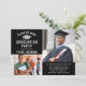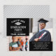 Anuncie seu formando de estilo com este convite de festa de formatura moderno, mas elegante. Design apresenta um fundo preto com dois espaços para fotos mais velho, cinzas prateadas e texto branco que podem ser personalizados com as informações do formando e detalhes da festa, e um simples padrão de faixas diagonais brancas na parte traseira da placa. As cores do texto e do plano de fundo podem ser personalizadas.