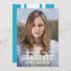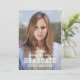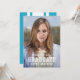 Anúncio de graduação de fotos no estilo varisity e convite de festas de formando. O convite tem um padrão de listras brancas em relação a uma cor de fundo editável (clique em personalizar para alterar) no verso. Personalize-o substituindo o texto do marcador de posição e substitua a foto do marcador de amostra/marcador de posição por sua própria foto. Para obter mais opções, como alterar a fonte e seu tamanho/cor ou o espaçamento entre letras, clique no botão "Personalizar". *Observe que a Marca d'água do Zazzle que aparece na visualização de zoom NÃO aparecerá no produto impresso final. © Rosewood e Citrus