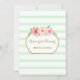 Convites de festas de janto de ensaio de modelo personalizáveis no padrão de listras verdes e brancas de menta pastel clara com detalhes dourados e flores de aquarela cor-de-rosa.