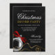 Convide seus hóspedes em estilo com estes convites de festas de Natal elegantes. Apresentando um ornamento prateado, arco vermelho e bruxelas douradas sobre fundo preto. Perfeito para festas corporativas, festas de férias de negócios, festas de férias de empresa e muito mais. Personalize facilmente o seu evento especial. Designs são ilustrações/gráficos impressos planos - NÃO EMBELÉCIES REAIS.