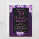 Um convite de festas preto com aniversário de 30 anos floral roxo e rosa jantado.