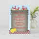Um convite do divertimento para um partido da fervura ou do marisco do caranguejo. O texto do partido é colocado no pote grande dos caranguejos, do milho, das cebolas e das batatas. O pote senta-se na beira checkered vermelha com limões. O teste padrão Checkered suporta sobre do cartão demasiado.