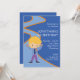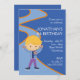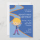 Este convite de aniversário customizável caracteriza um menino que veste skates de gelo em um fundo azul e em um texto customizável.