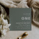 Este primeiro aniversario verde elegante e elegante minimalista é perfeito para uma simples celebração de aniversário de bebês. O design apresenta uma bela fonte em um fundo verde para complementar seu evento.
