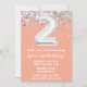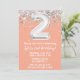 Pêssego e convite de aniversário 2.º de idade 2 convites de aniversário com brilho e escrevendo moderno de escrita e balões de folha divertida.