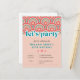 Adicione uma vibração retroativa infantil a QUALQUER festa de aniversário da IDADE com estes convites bonitos. Fácil de personalizar. Inscrição vintage achatada com uma inscrição azul brilhante, "vamos", design de flores e arcos. Desenhar sobre temas minimalistas do século médio. Cores modernas de cor rosa poeirento, rosa quente e azul.