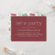 Um convite ousado e festivo para festas. Com "vamos festejar" na tipografia moderna, esta design é perfeita para dar o tom a um evento divertido e memorável. Os detalhes são impressos em chic, todas as letras de boné, e o nome da sua família está em letra de escrita manual. O texto branco contra um fundo vermelho festivo faz com que este pop de convite, enquanto o verso tem um padrão de aquarela pintado manualmente mais tradicional de verde-inverno, bagas e arcos vermelhos. Quer você esteja hospedando uma festa de coquetel, troca de biscoitos, ou uma família aconchegante se juntando, este convite é perfeito para adicionar um toque de espírito de feriado e talento moderno à sua celebração! Este design também está disponível como download de convites de festas de Natal digitais. Verifique a coleção para itens correspondentes ou procure na nossa loja designs de convite de festas de Natal mais exclusivos.