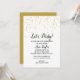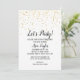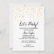 Este convite de festas de aposentadoria do Partido Vamos é perfeito para uma celebração de aposentadoria clássica ou uma recepção elegante. O design apresenta um confete de ouro falso de tendência com uma elegante caligrafia de cinza escura sobre um fundo branco.