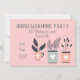 Um design na moda moderno adequado para uma festa de inauguração de plantas potes bonitinhas, cor-de-rosa e cinzas. Este design é fantástico e pode ser totalmente personalizado para incluir seus próprios detalhes pessoais.