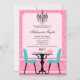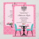 Convite Partido Elegante Damask e Chandelier Pink Aqua Tea
