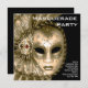Belo ouro Veneza máscara preta e mascarada de convite de festas dourado. Este elegante convite de festas preto e ouro é facilmente personalizado para o seu evento, simplesmente escolhendo o botão "Personalizar!" para começar a adicionar detalhes do evento, estilo de fonte, tamanho de fonte e cor e texto. Observe que todos os adesivos, cartões e designs de convite que você encontrará no Zazzle são gráficos impressos sem joias reais, arcos, levantados, gravados, ou peças ou peças adicionadas.