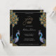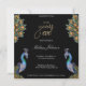 Com as suas penas brilhantes e a magnífica plumagem, este elegante pavão representa força e confiança com o perfeito equilíbrio de delicada mas marcante compostura. Convide convidados para a Festa de Ano Novo com este convite elegante e formal e elegante para o pavão! Completamente personalizável! Artesanato original pintado à mão em aquarela.