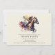 Convites de festas derby elegantes apresentam uma ilustração com aquarela de um cavalo e jockey correndo em direção à linha de chegada e seus detalhes em letra chic. CORRESPONDENTE a itens na nossa coleção.