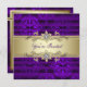 Convite de festas roxo elegante e modelo de damasco dourado. Este belo convite de festas roxo e dourado é facilmente personalizado para o seu evento, simplesmente escolhendo o botão "Personalizar!" para começar a adicionar detalhes do evento, estilo de fonte, tamanho de fonte e cor e texto. Observe que todos os adesivos, cartões e designs de convite que você encontrará no Zazzle são gráficos impressos sem joias reais, arcos, levantados, gravados ou acrescentados peças ou peças. com