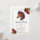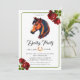 Convite de festas da Raça Moderna Derby do Partido Equestre Equestre Invitation Modern Horse Race Derby com ilustração de um cavalo de corrida com jóquei e padrão riscado nas costas. Todos os elementos de texto podem ser alterados para que este design possa ser usado para outros eventos também: convite para casamento equestre clássico, festa de aniversário de cavalo, festa de relógio derby, abertura de celeiro de cavalo e muito mais. Fundo, cor da ilustração e cores do texto podem ser alteradas com a ferramenta design!