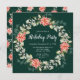 Este convite para festas divertidas e festivas mostra uma coroa de água na coroa de Natal com poinsetos vermelhos e holly em um fundo verde escuro. O texto combina o script manuscrito e as fontes serif para um aspecto elegante e sofisticado. Isto é perfeito para festas de férias, embrulhos, festas de janto, casa aberta e muito mais.
