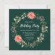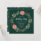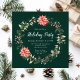 Este convite para festas divertidas e festivas mostra uma coroa de água na coroa de Natal com poinsetos vermelhos e holly em um fundo verde escuro. O texto combina o script manuscrito e as fontes serif para um aspecto elegante e sofisticado. Isto é perfeito para festas de férias, embrulhos, festas de janto, casa aberta e muito mais.