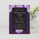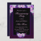 Um preto com convite de festas floral púrpura e cor-de-rosa.