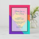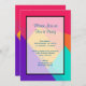 Convite de festas genérico. Um legal design geométrico. Muitos triângulos e pirâmides brilhantes. As cores incluem rosa, azul-turquesa, azul-claro, roxo real, laranja e amarelo. Um design moderno contemporâneo. O meio é branco transparente com uma borda preta. Personalize/personalize com os detalhes do seu partido.