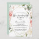 Este convite de festas geométrico de folhagem verde-dourada é perfeito para uma nova celebração da casa moderna. O design apresenta uma folhagem botânica, pintada à mão, verde e dourada, com flores cor-de-rosa, pinceladas, brancas, enfeitando uma elegante estrutura geométrica.