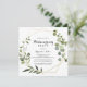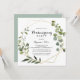 Este convite de festas geométrico de ouro tropical verde é perfeito para uma simples nova celebração. A design apresenta lindas folhas verdes pintadas à mão, enfeitando um quadro geométrico dourado.
