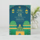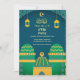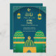 Este moderno e elegante convite de festas Ramadan Iftar apresenta o ouro árabe "Labbaik ya Rasool", caligrafia e padrão de ouro islâmico, mesquitas coloridas desenhadas à mão, lanternas islâmicas e crescente de ouro com estrela sobre fundo verde-negro. Você pode mudar facilmente a cor de fundo, o texto, as fontes, as cores ou remover clicando nas ferramentas de personalização do Zazzle.
