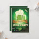 O lançador de cerveja verde contra uma Rua de fundo de shamrock verde. convite de festas/passageiro do Dia de Patty.